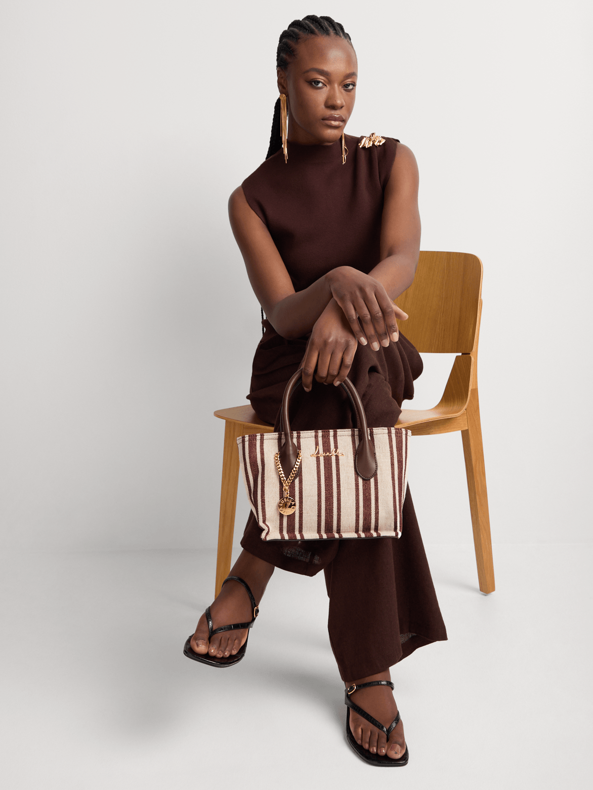The Luella Striped Canvas Shopper Bag is the perfect pick for summer. The seasonal stripe is classic yet on-trend, paired with the dark brown straps. The structured shape keeps the look refined. Carry it with co-ord linen sets, wide-leg denim or a timeless shift dress.