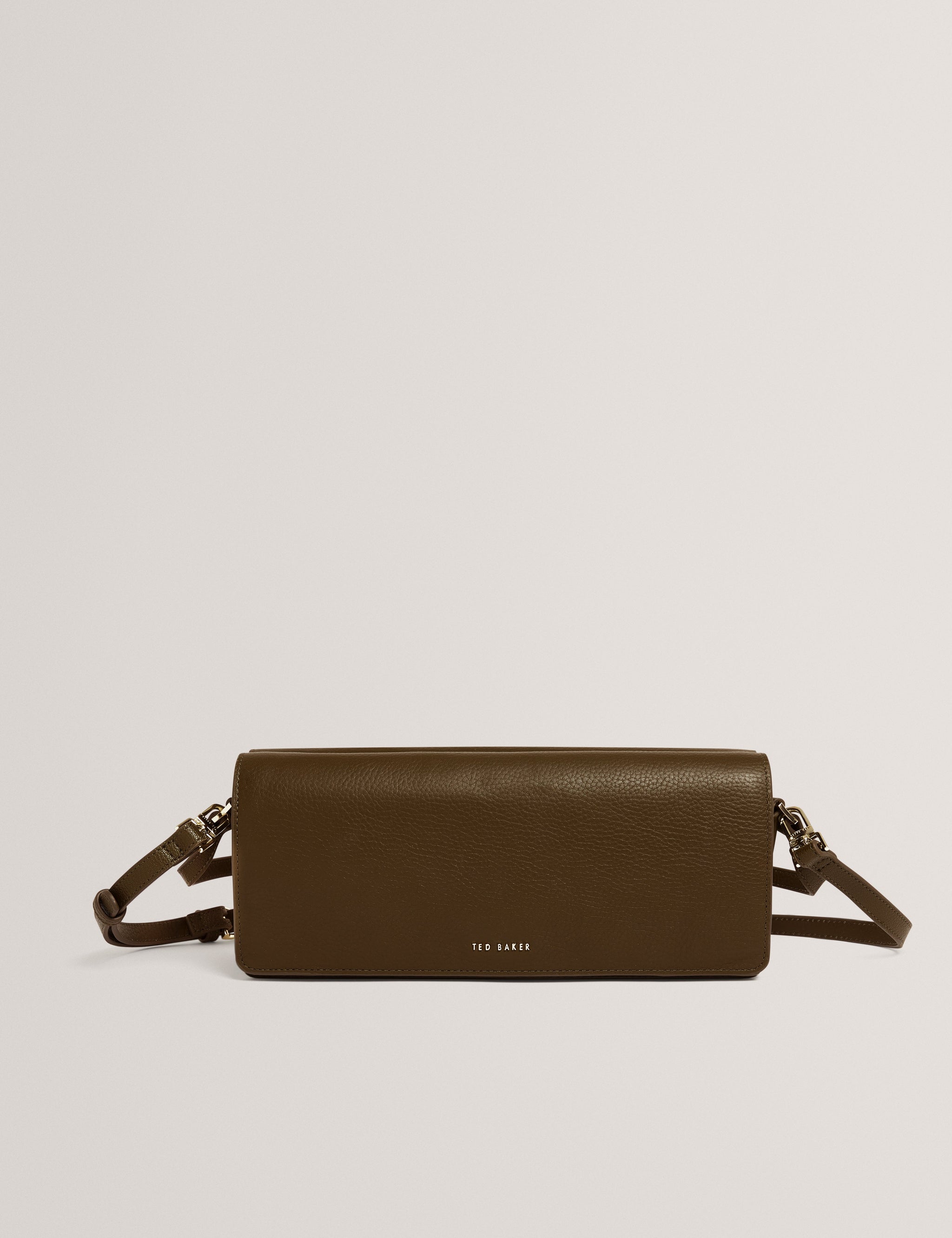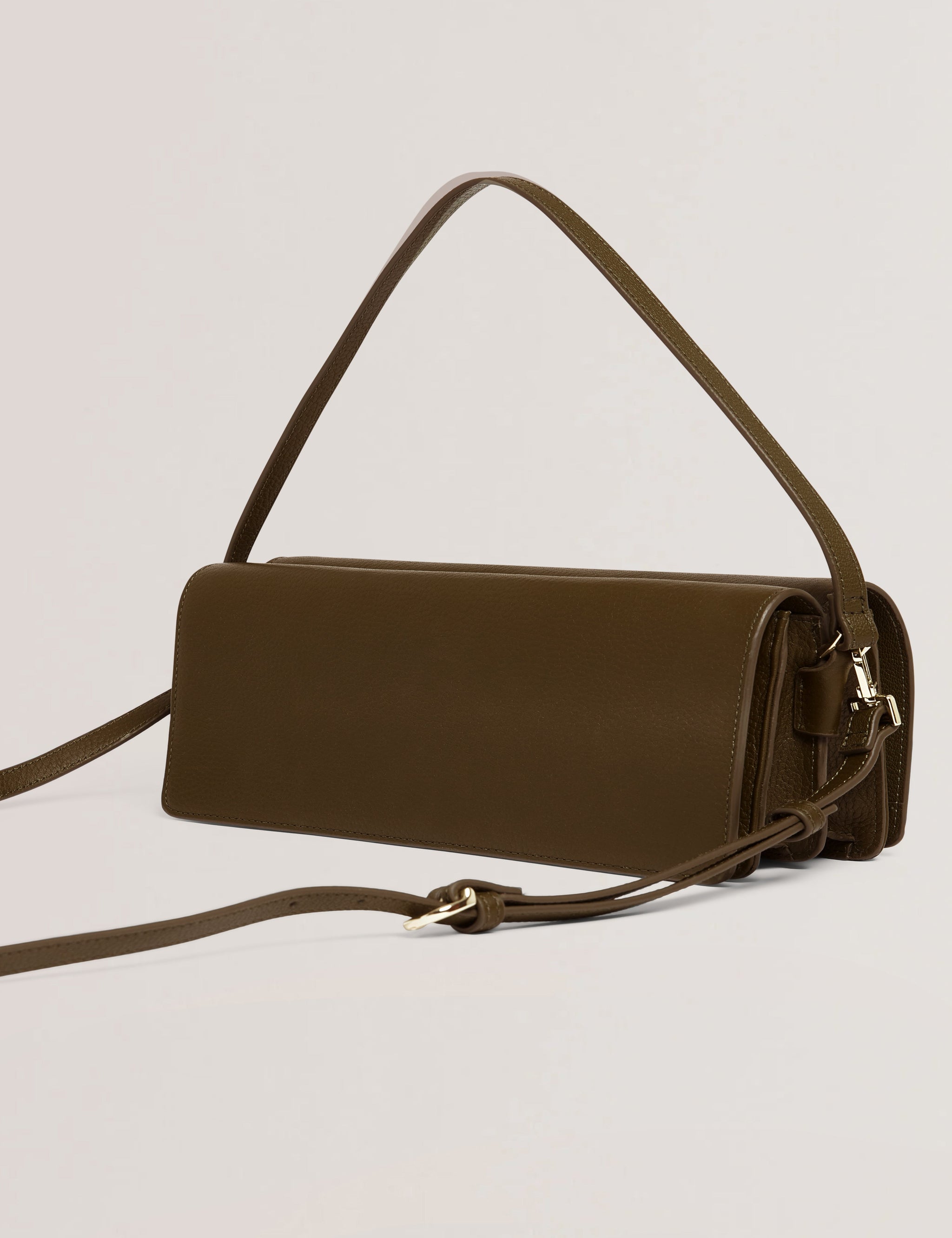 Elevate your style with the TWYYLA Leather Elongated Shoulder Bag. Crafted from grained genuine leather, it combines luxury with modern functionality. The double-sided fold-over design and removable strap options make it versatile for day-to-night wear.