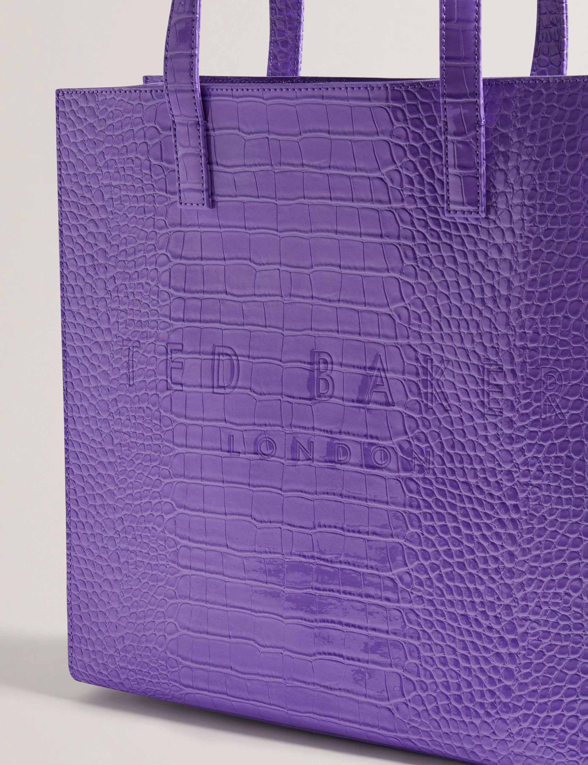 Be sure to snap up the latest in our Ted Baker branded bags, the CROCCON, the croc detail large icon bag. This tote shape will give you room for all that precious cargo without compromising on style.