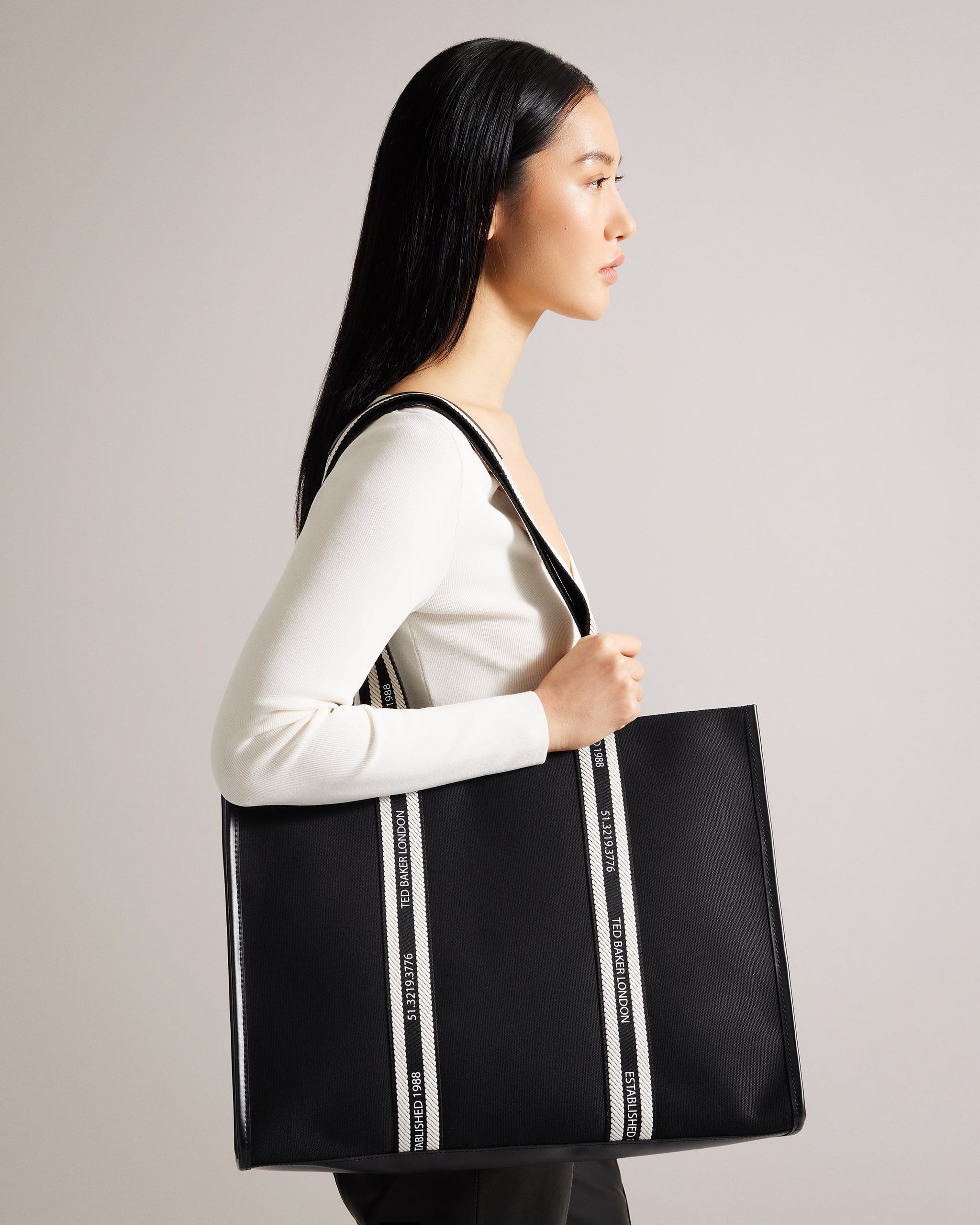 Simple but powerful, GEORJEY oozes class. Featuring branded straps and contrasting details, this sleek tote is a must-have for off-duty days.