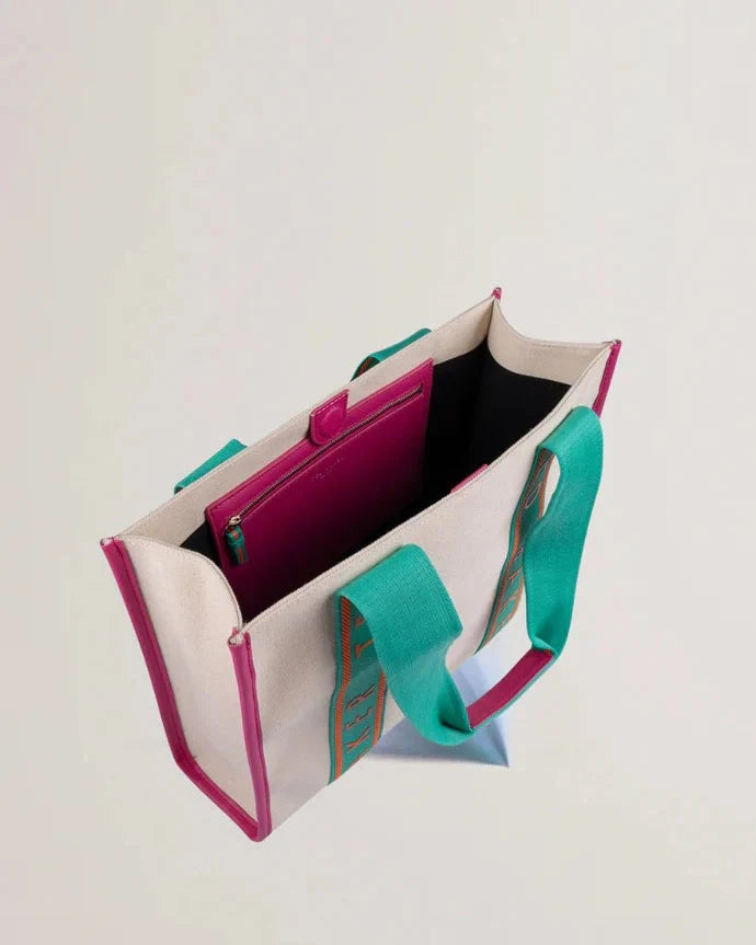 From running errands to summer getaways, you'll want GEORJIA on your arm. A canvas upper brings a laid back feel to this tote bag, topped with contrast branded webbing and smooth leather trims for a classy touch.