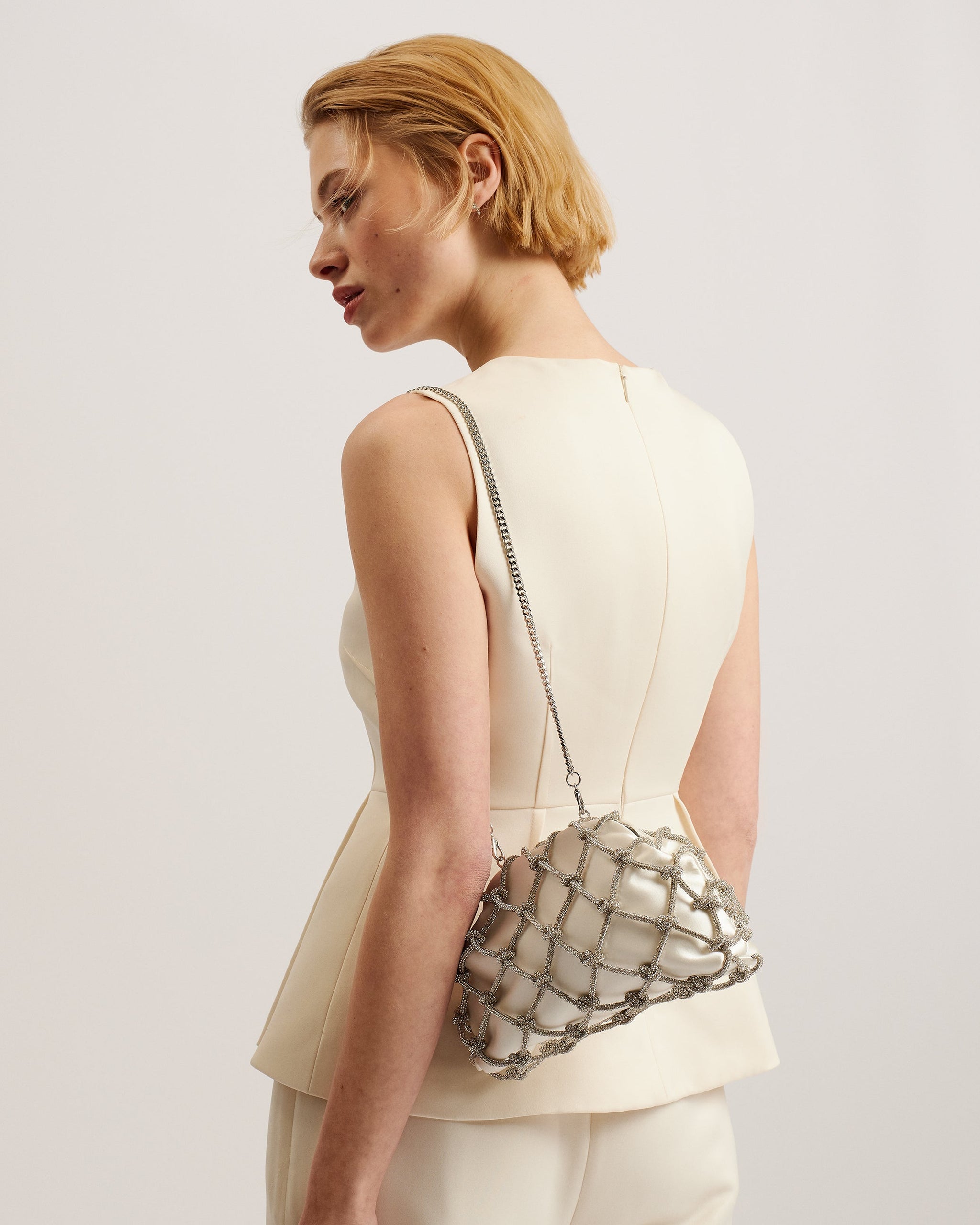 Designed to make a statement, KYLAR steals the show with a crystal rope that brings a touch of sparkle to your ensemble. The clasp fastening ensures your essentials are secure, while the internal zip pocket provides convenient storage for smaller items. Complete with a slim chain strap, this clutch offers versatile carrying options, allowing you to effortlessly transition from a handheld clutch to a chic shoulder bag.