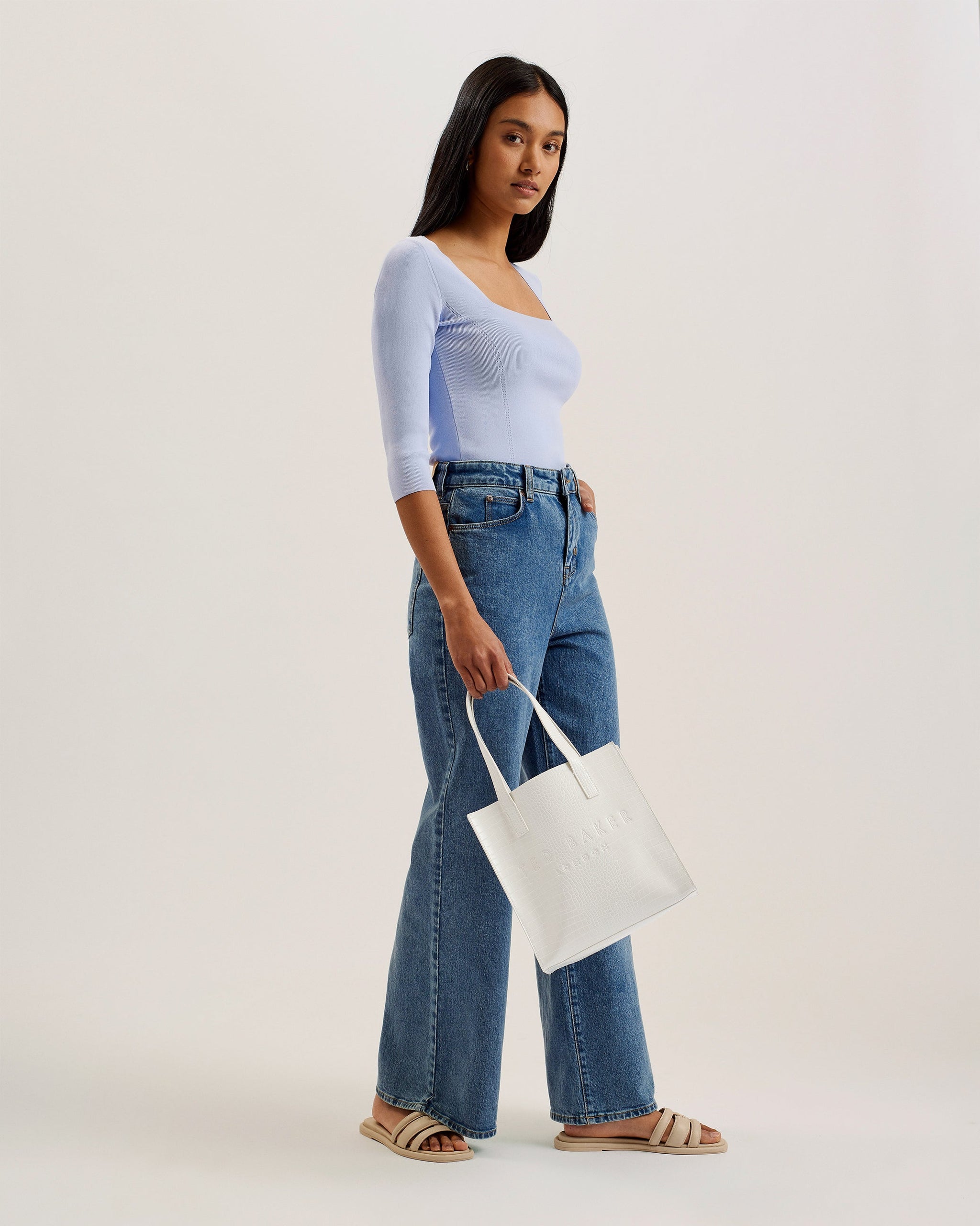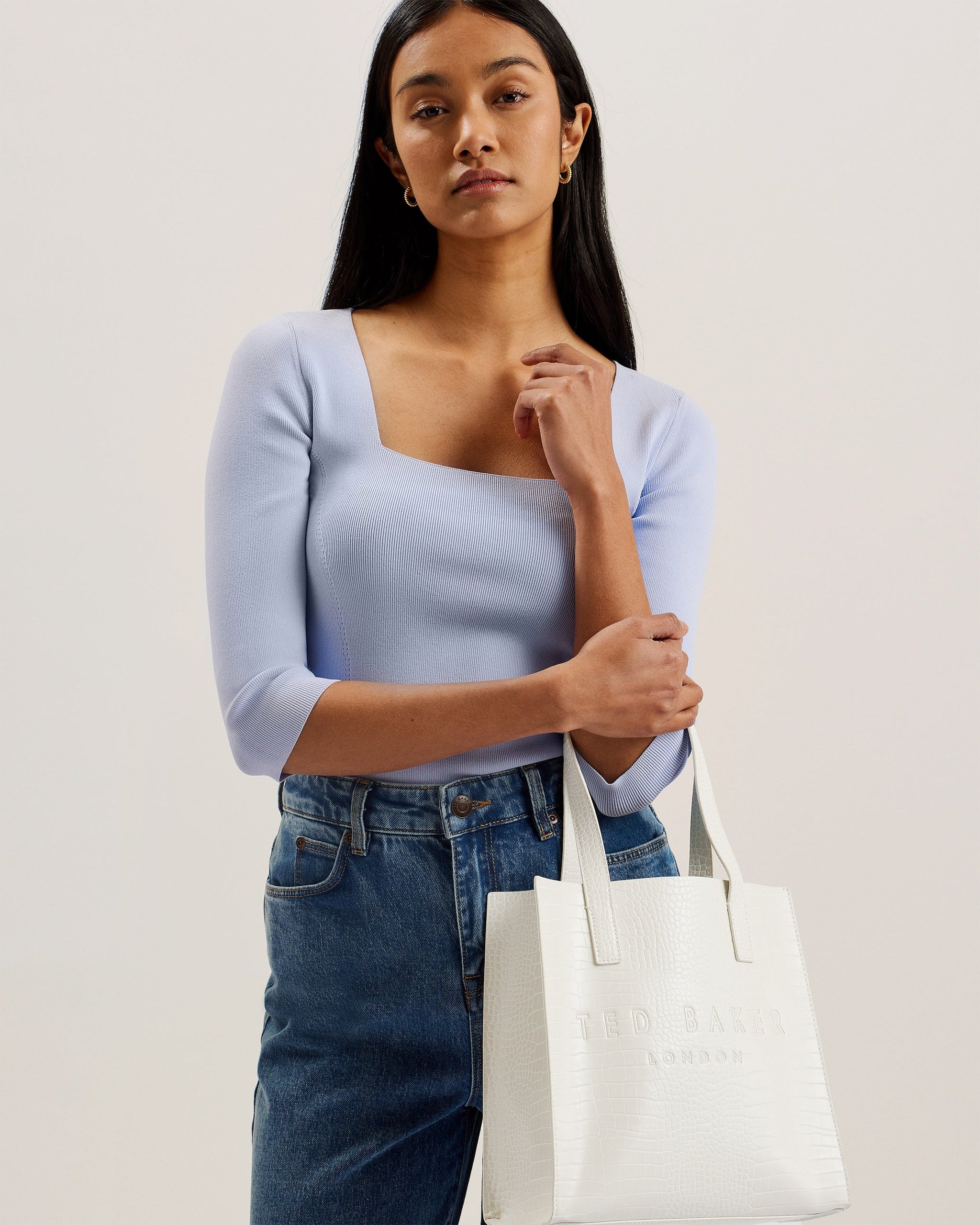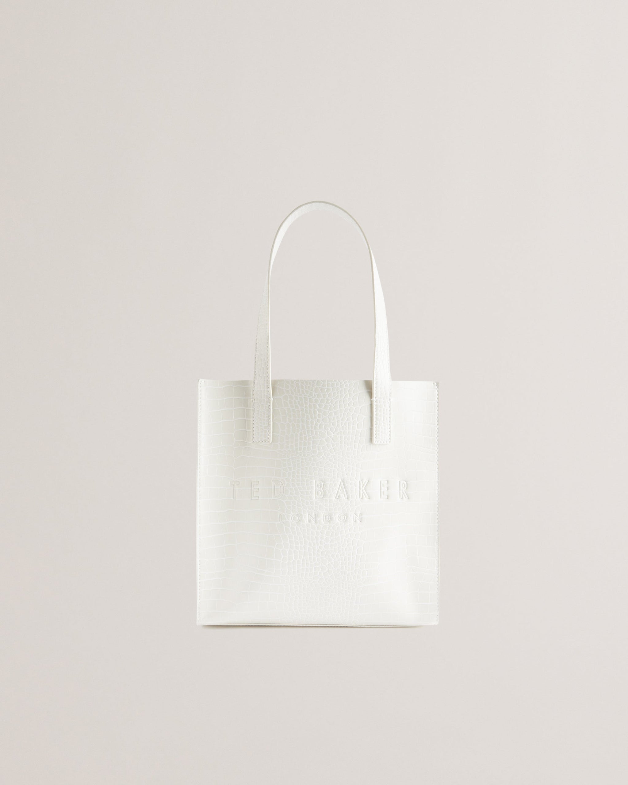 Be sure to snap up the latest in our Ted Baker branded bags, the REPTCON, the croc detail small icon bag. This tote shape will give you a modest amount of room for all that precious cargo without compromising on style; coming in a smaller size, this sweet bag will be the finishing touch to any outfit.